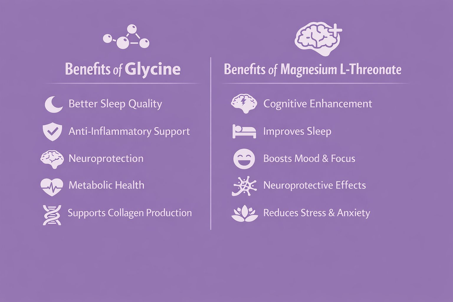Combining Glycine with Magnesium L-threonate, SleepMaxx supports the body’s natural sleep processes to promote relaxation, improved sleep quality, and next-day cognitive clarity, without sedation or residual grogginess.